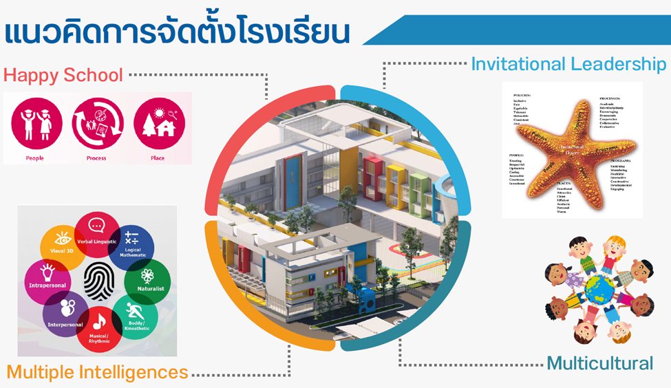 เป็นต้นแบบโรงเรียนแห่งความสุขบนฐานพหุปัญญาและพหุวัฒนธรรมสู่การเป็นมนุษย์ที่สมบูรณ์และเป็นชุมชนแห่งการเรียนรู้เพื่อการพัฒนาวิชาชีพครู